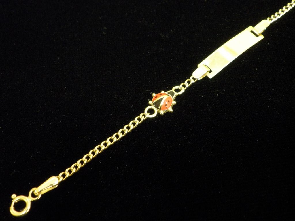 Златна детска гривна с плочка