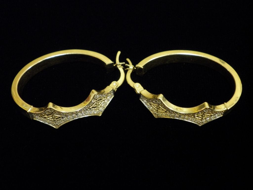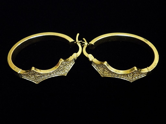 Златни обеци халки с бели камъни