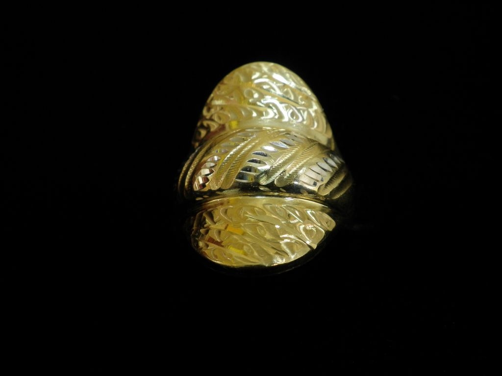 Златен пръстен с гравирано бяло и жълто злато,олекотен