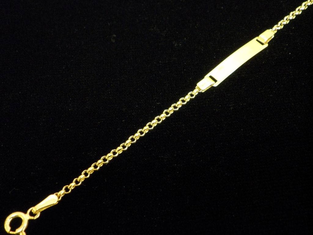 Златна детска гривна с плочка