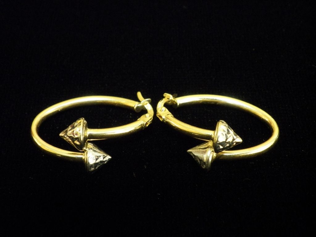 Златни обеци с бяло и жълто злато,олекотени