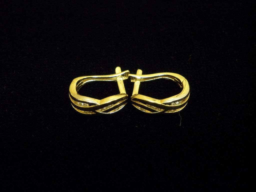 Златни обеци с бели камъни,английско закопчаване