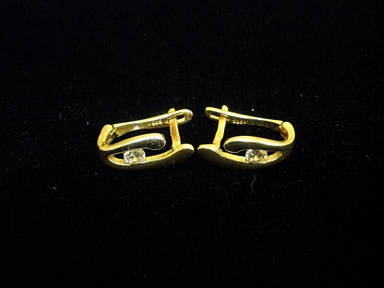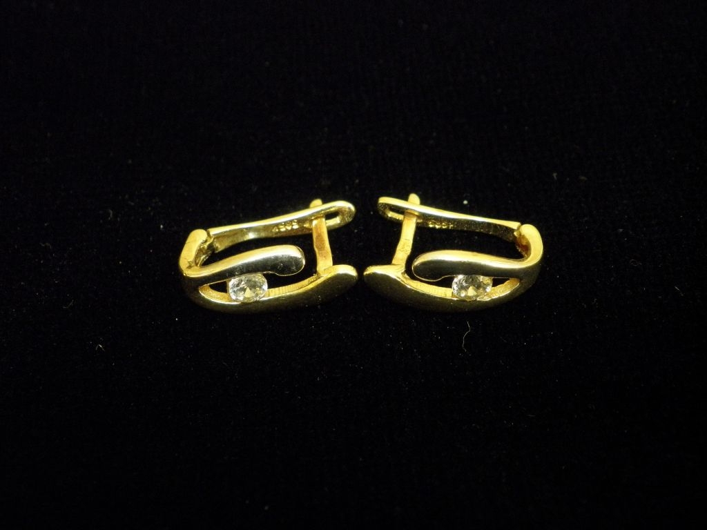 Златни обеци с бели камъни,английско закопчаване