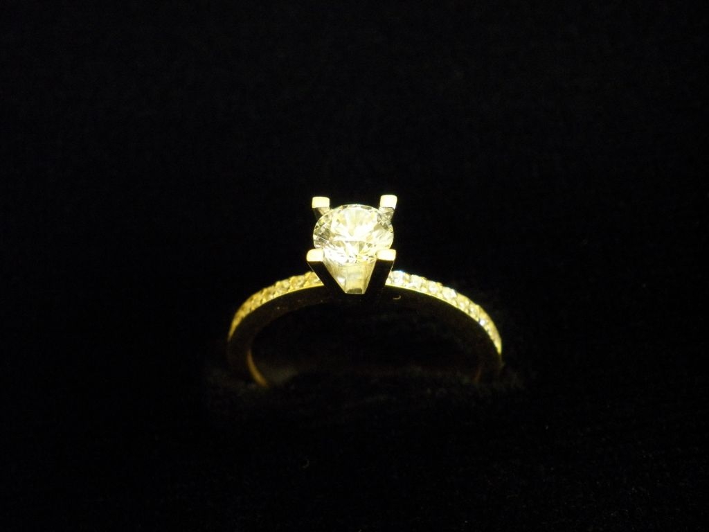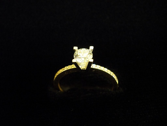 Златен пръстен годежен с бели камъни