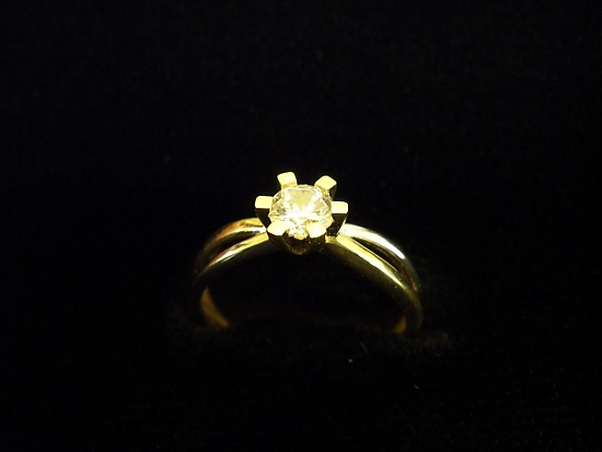 Златен пръстен годежен с бял камък