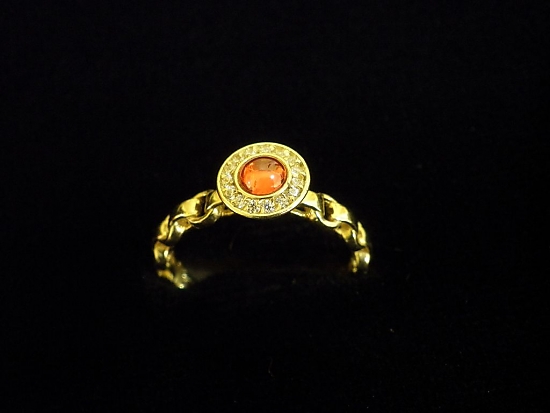 Златен пръстен с червен камък и малки бели камъни