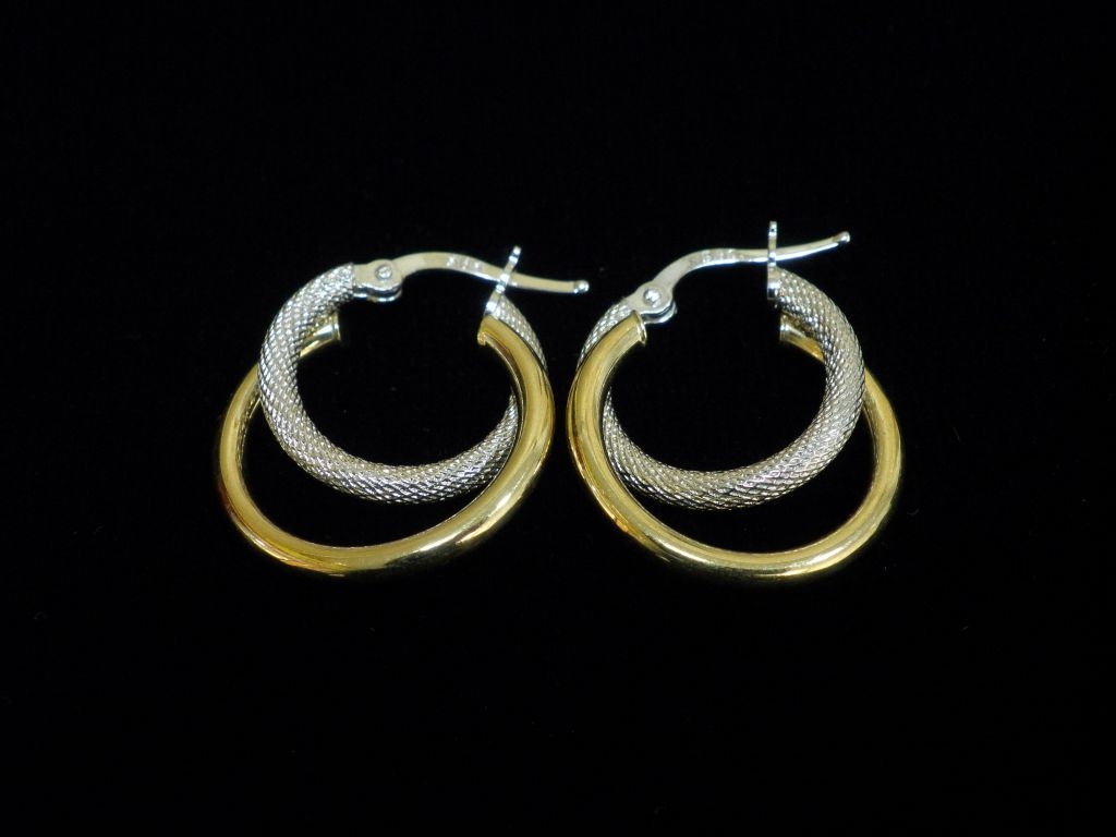 Златни обеци с бяло и жълто злато,олекотени