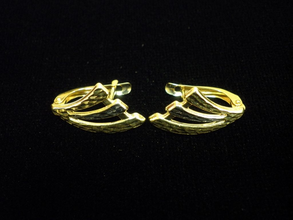 Златни обеци гравирани с английско закопчаване