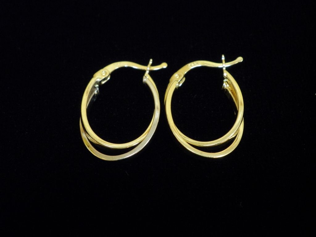 Златни обеци с бяло и жълто злато,олекотени