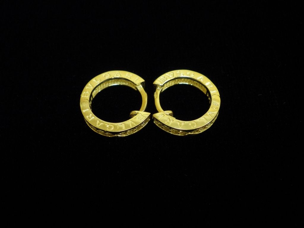 Златни обеци Булгари с бели камъни