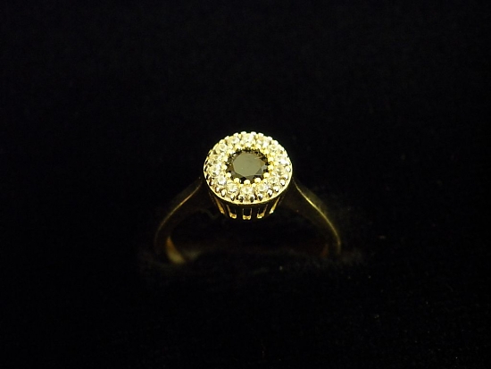 Златен пръстен с черен камък