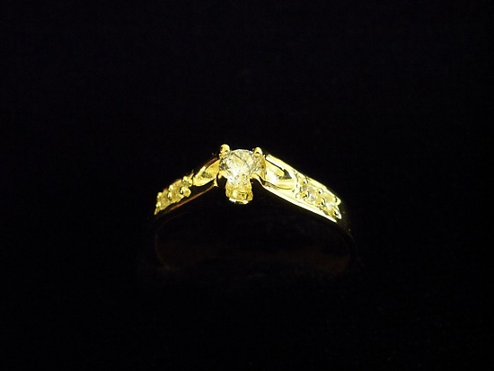 Златен пръстен годежен с бели камъни