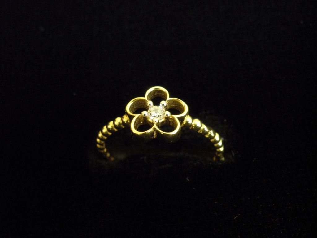 Златен пръстен с орнаменти от жълто злато и бял камък