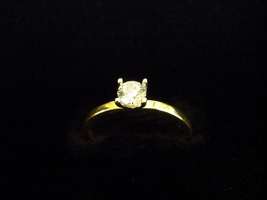 Златен пръстен годежен с бял камък