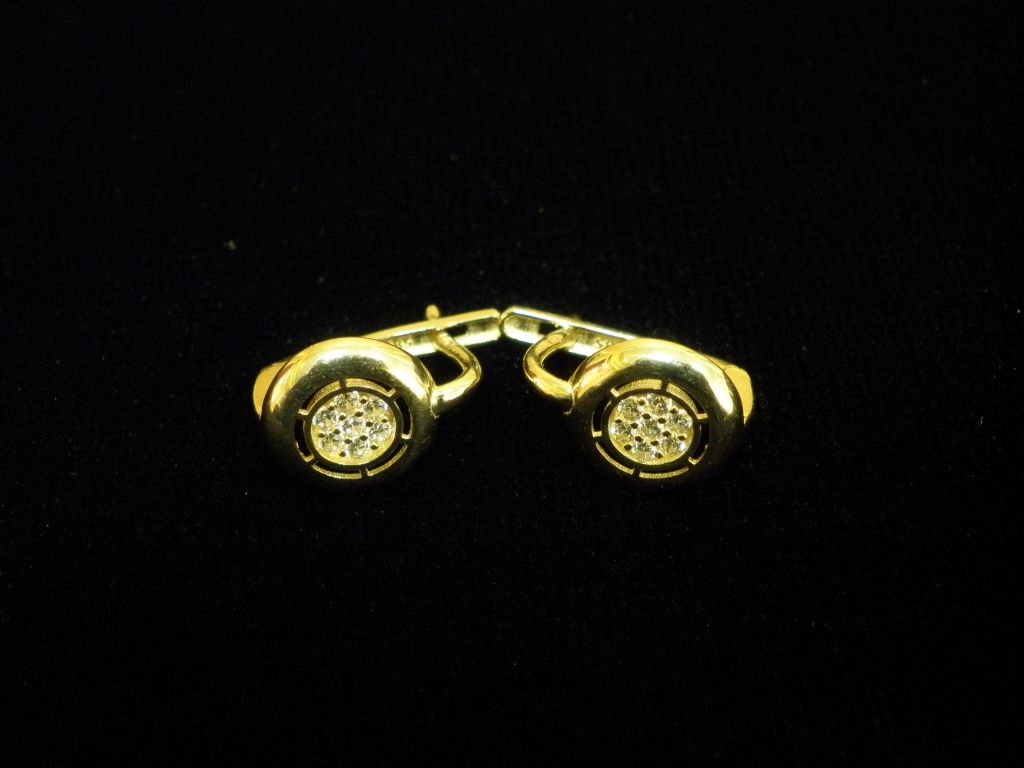 Златни обеци с бели камъни,английско закопчаване