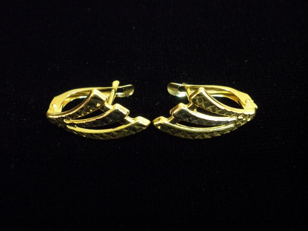 Златни обеци гравирани с английско закопчаване