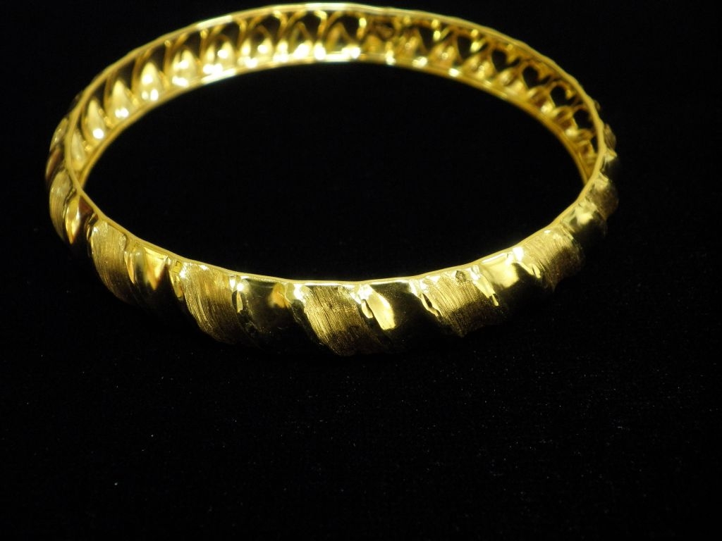 Златна твърда гривна с матирано жълто злато