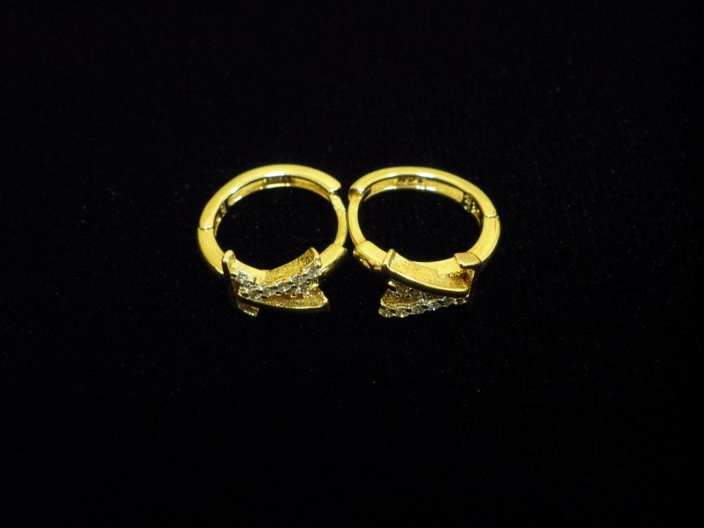 Златни обеци халки с бели камъни