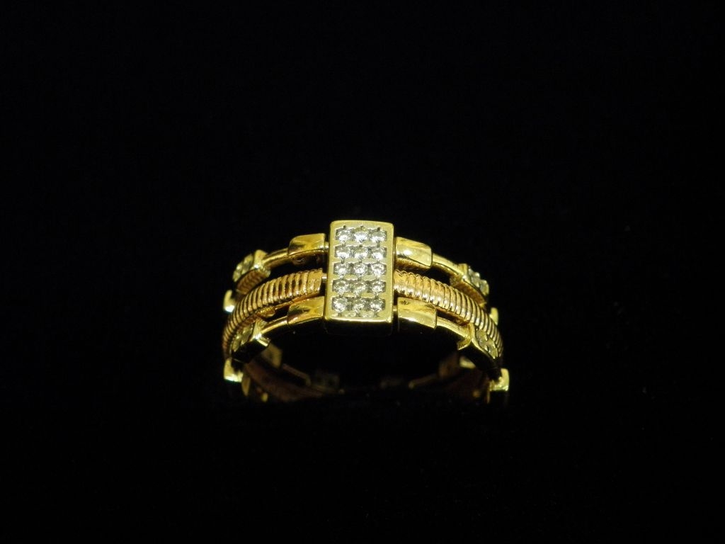 Златен пръстен с бели камъни