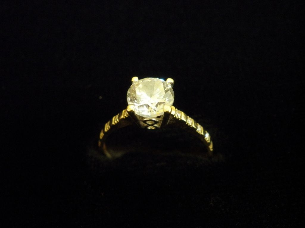 Златен пръстен годежен с бели камъни
