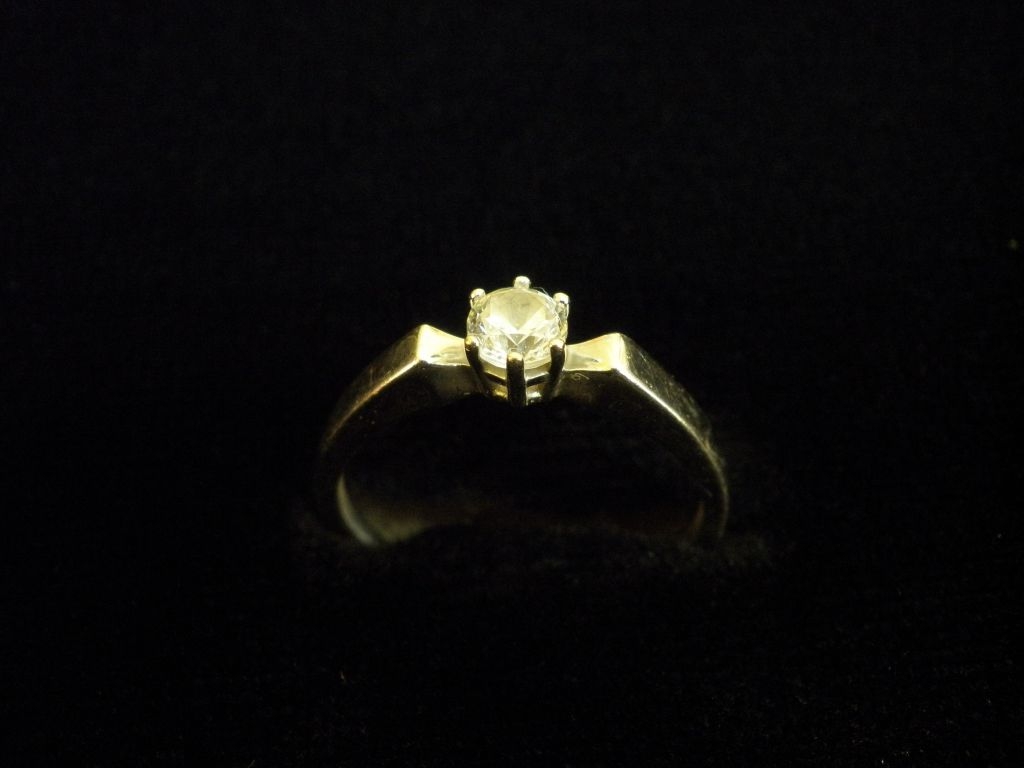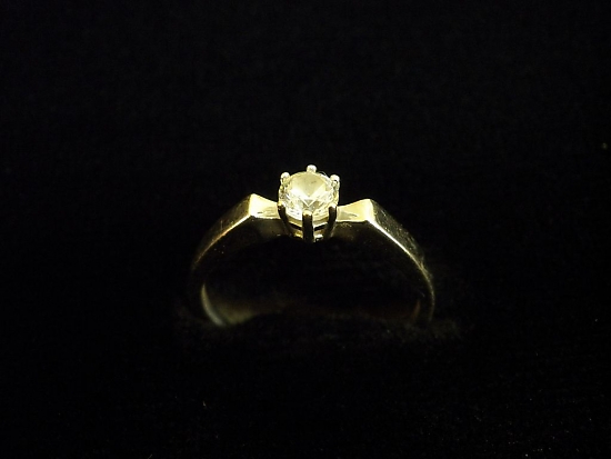 Златен пръстен годежен с бял камък