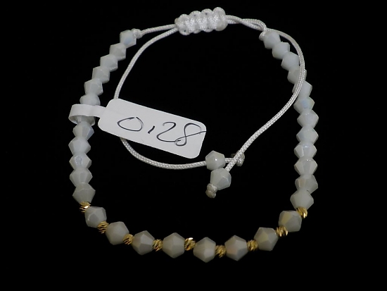 Златна гривна с бял конец и бели релефни мъниста