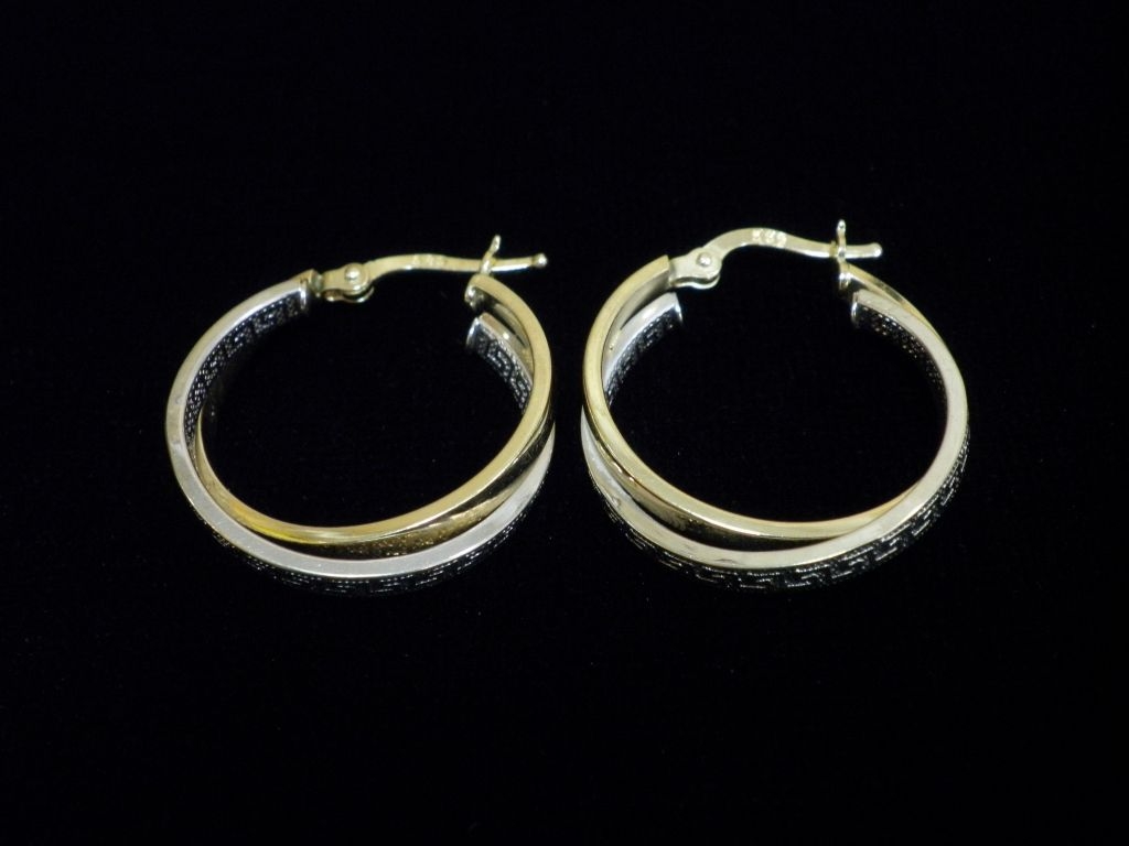 Златни обеци с елементи Версаче бяло и жълто злато,олекотени
