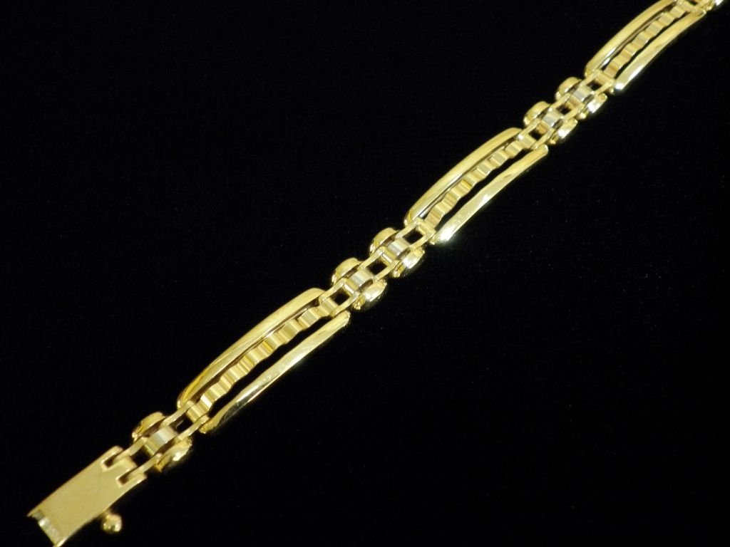 Златна синджирна гривна с елементи от бяло и жълто злато,олекотена