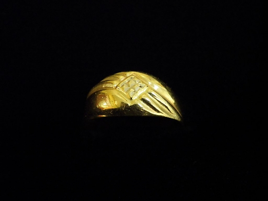 Златен пръстен с гравирано бяло и жълто злато,олекотен