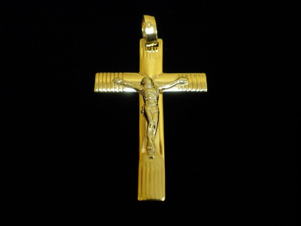 Златен кръст с разпятие от бяло злато,олекотен