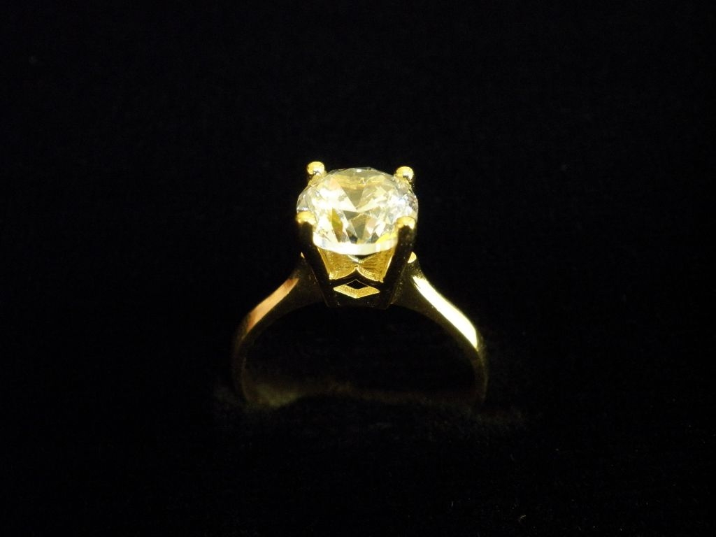 Златен пръстен годежен с бял камък