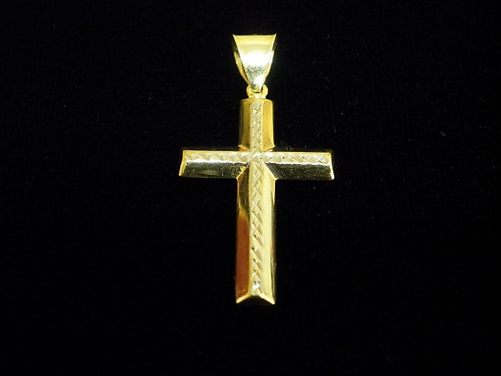 Златен кръст гравиран от бяло и жълто злато