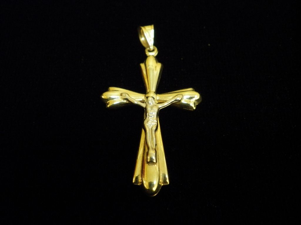 Златен кръст с разпятие от бяло злато,олекотен