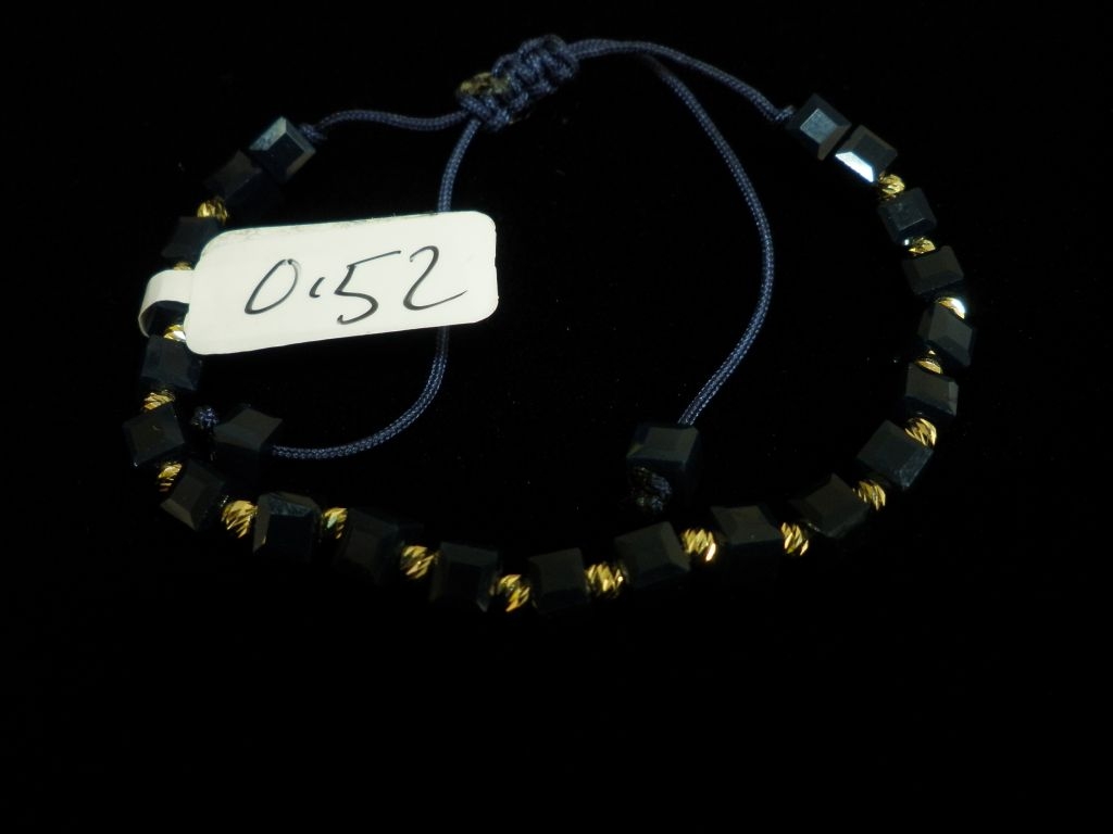 Златна гривна със тъмно син конец и тъмно сини квадратни мъниста