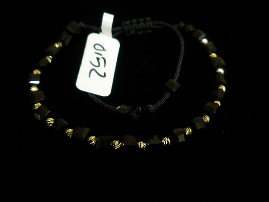 Златна гривна с черен конец и черни квадратни мъниста