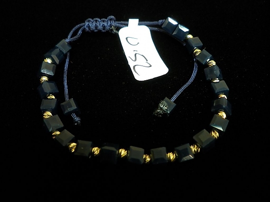Златна гривна със тъмно син конец и тъмно сини квадратни мъниста
