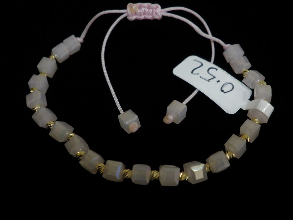 Златна гривна с розов конец и розови квадратни мъниста