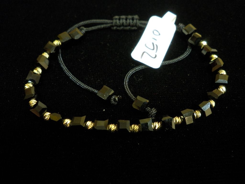 Златна гривна с черен конец и черни квадратни мъниста