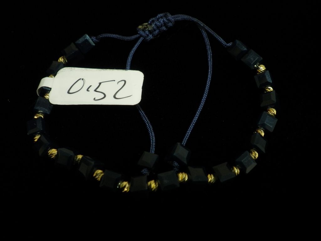 Златна гривна със тъмно син конец и тъмно сини квадратни мъниста