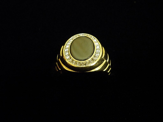 Златен пръстен с черна плочка и бели камъни