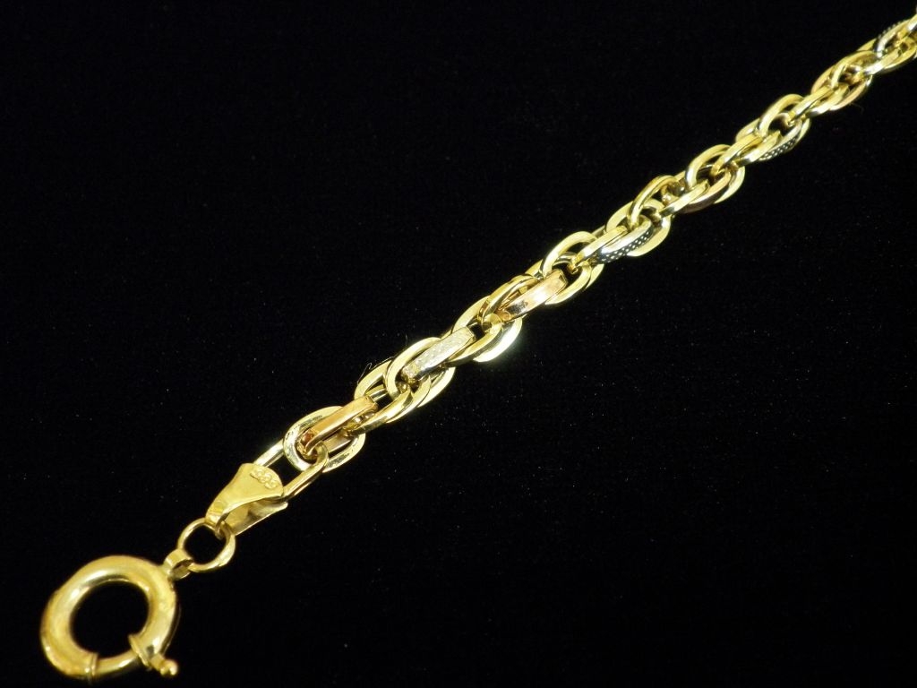 Златна синджирна гривна с елементи от бяло,жълто и червено злато,олекотена