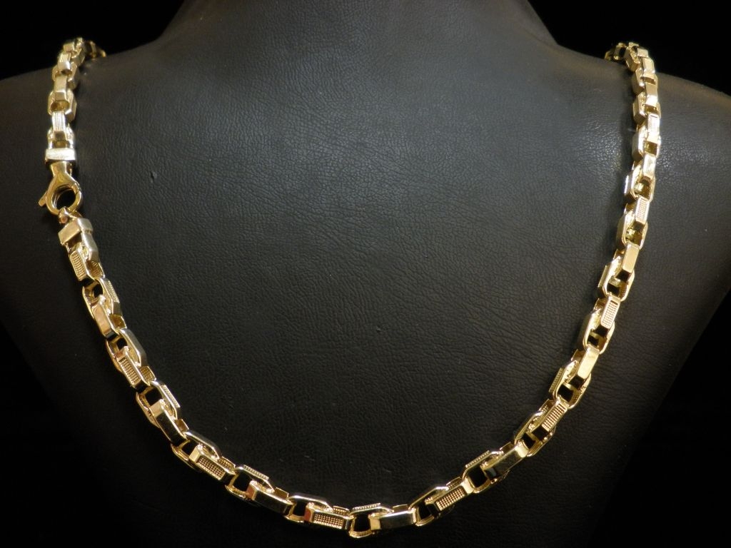 Златен синджир с гравирани елементи от жълто злато,олекотен