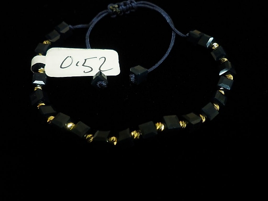 Златна гривна със тъмно син конец и тъмно сини квадратни мъниста