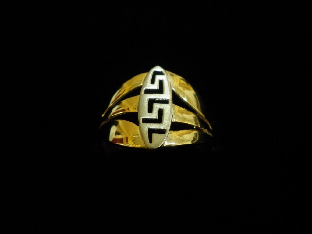 Златен пръстен с елементи Версаче от бяло и жълто злато,олекотен