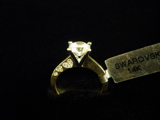 Златен пръстен годежен с бели камъни