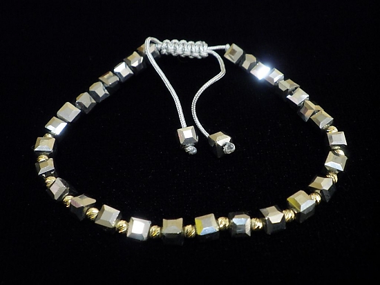 Златна гривна със сив конец и фигури сиви квадратни мъниста