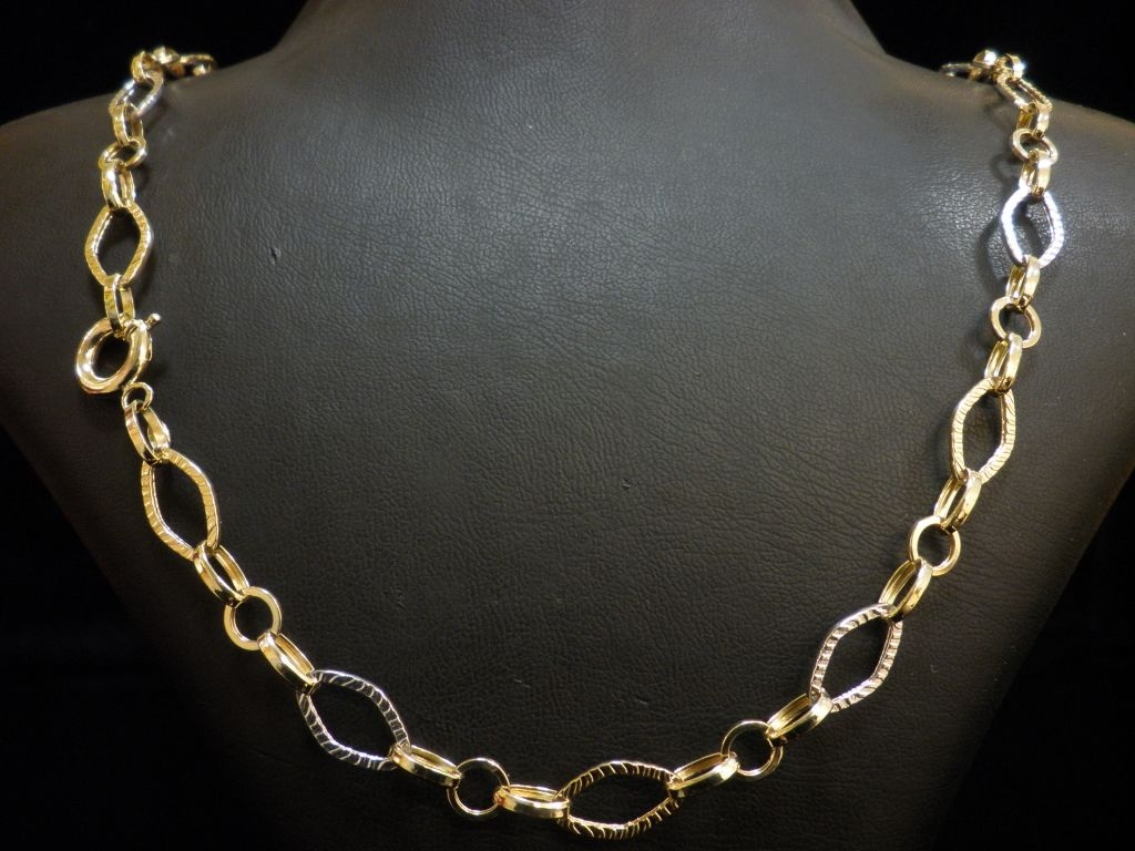 Златен синджир с гравирани елементи от бяло и жълто злато,олекотен