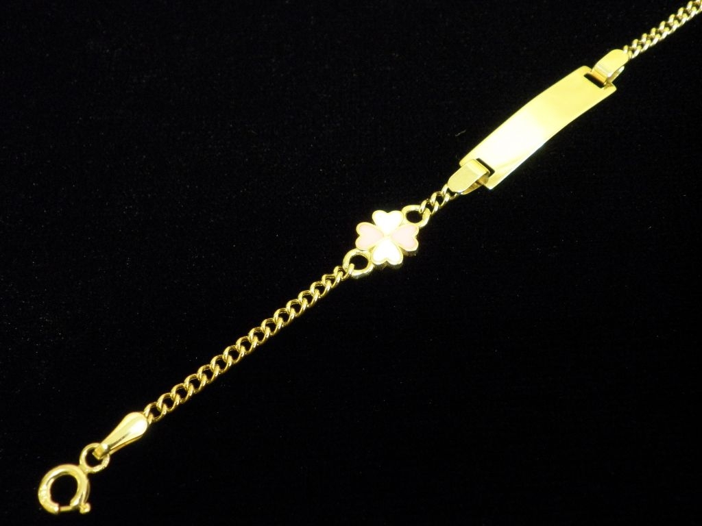 Златна детска гривна с плочка