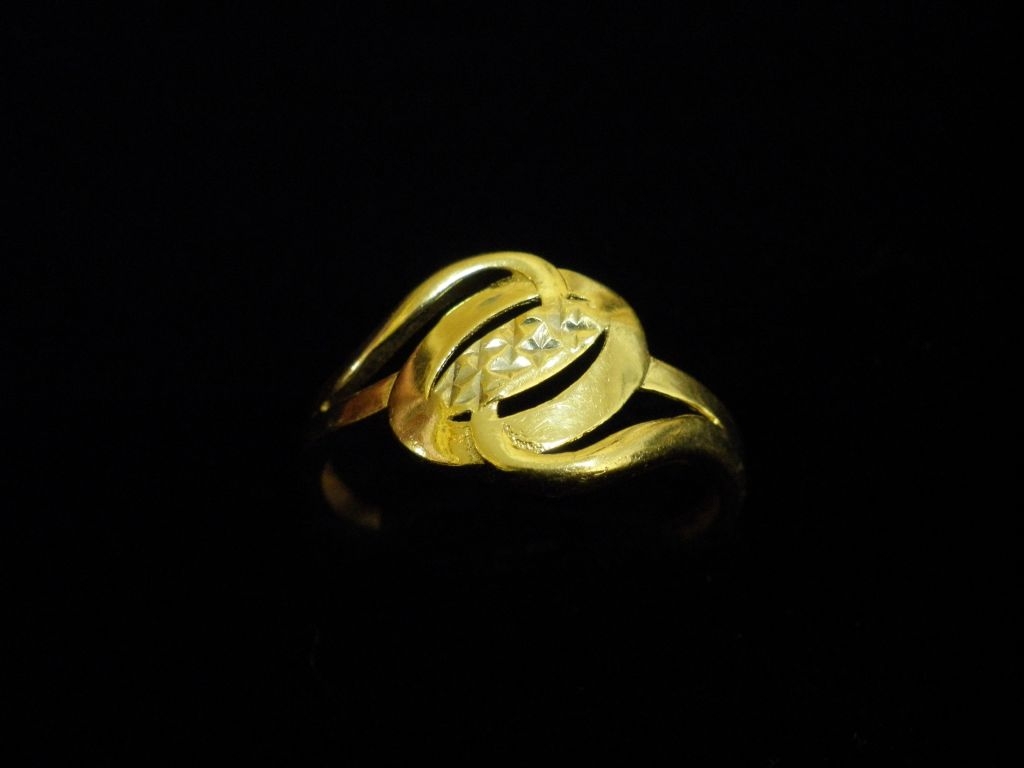 Златен пръстен с гравирано бяло и жълто злато,олекотен