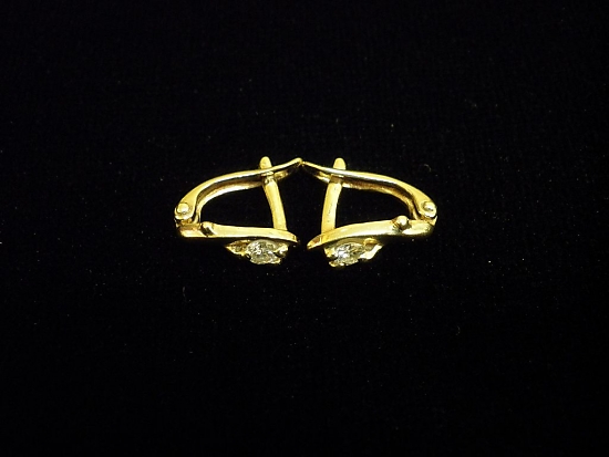 Златни обеци с бели камъни,английско закопчаване